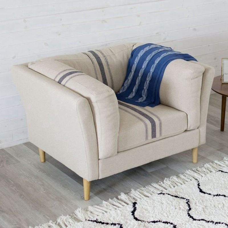 ソファ ソファー 1人掛け 一人掛け 肘付き リネン おしゃれ 一人用 北欧 ストライプ カフェ 西海岸 ポケットコイル 91150