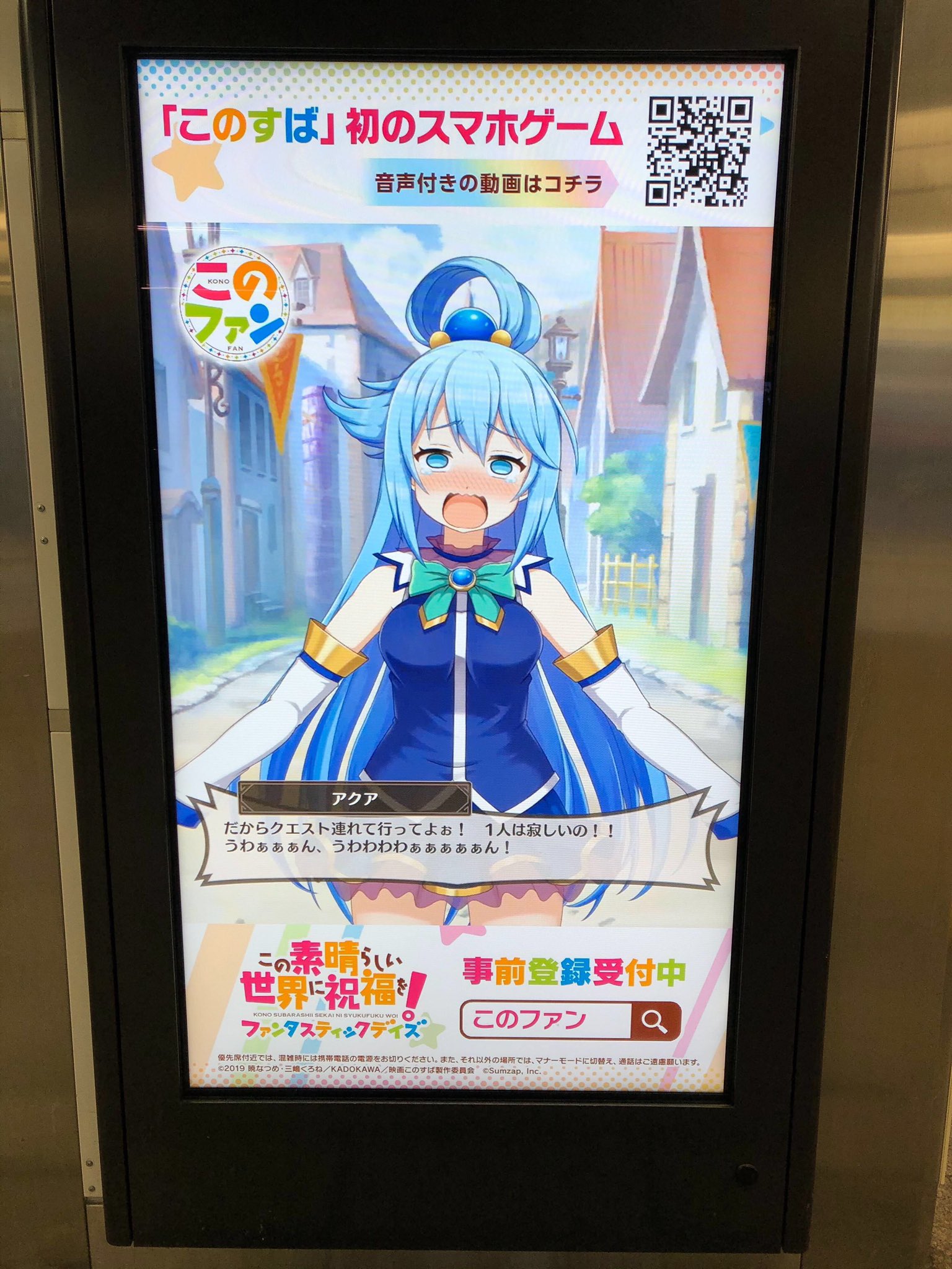 このファン この素晴らしい世界に祝福を ファンタスティックデイズ 公式 on twitter jr秋葉原駅構内のデジタルサイネージでは カズマ アクア めぐみん ダクネスがlive 2dでヌルヌル動いていますよ このファン このすば