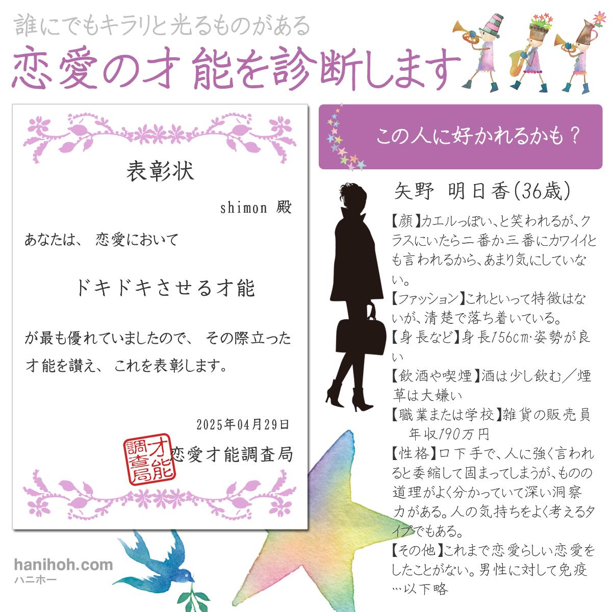 恋愛の才能を診断します 無料の恋愛占いハニホー 診断結果