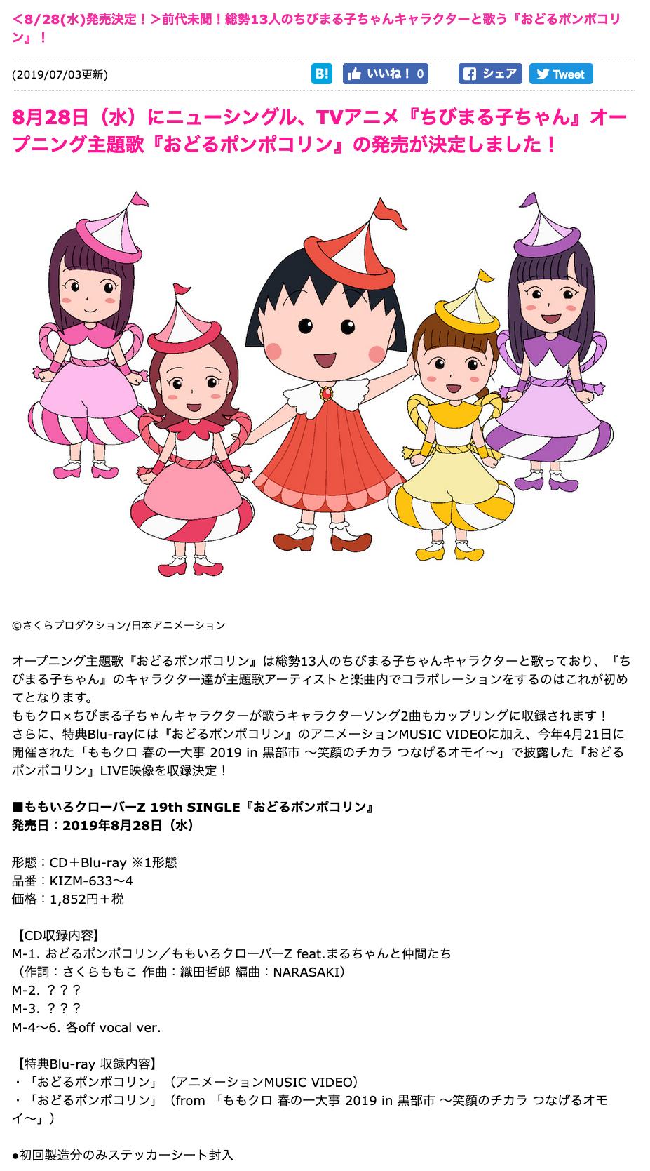 ももクロ ちびまる子ちゃん op主題歌 おどるポンポコリン 予告映像公開 what s in tokyo