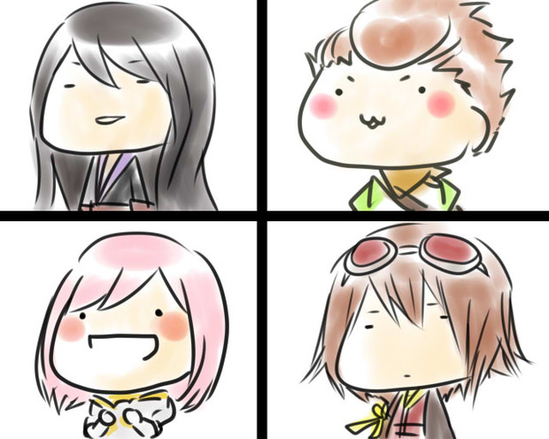二人でガッツポーズのイラスト てがきですのb かわいい ゆるい無料イラスト