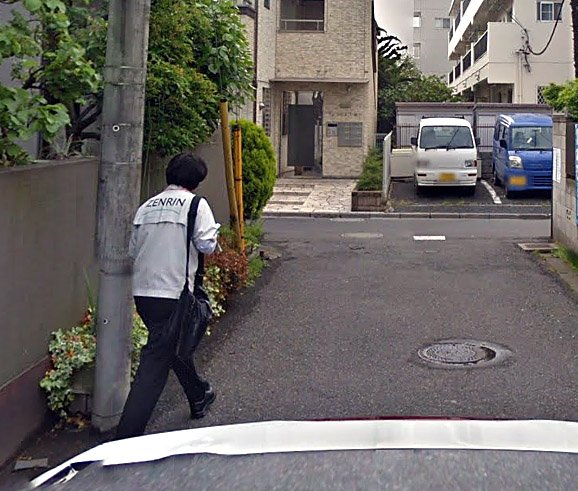 street viewにゼンリンの調査員の人が写り込んでいるという なんとも皮肉というか デジタルの最先端とアナログの極致が同居する光景 どちらも大切な 調査 togetter