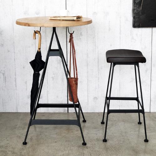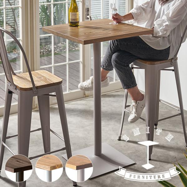カフェ風テーブル 木製 スチール ナチュラル ブラウン 正方形 幅75cm 高さ70cm 91358 カフェテーブル ダイニングテーブル カウンターテーブル 食卓 一本脚 75角 2人掛 2人用 おしゃれ カフェ バー 飲食店 レストラン 西海岸 北欧