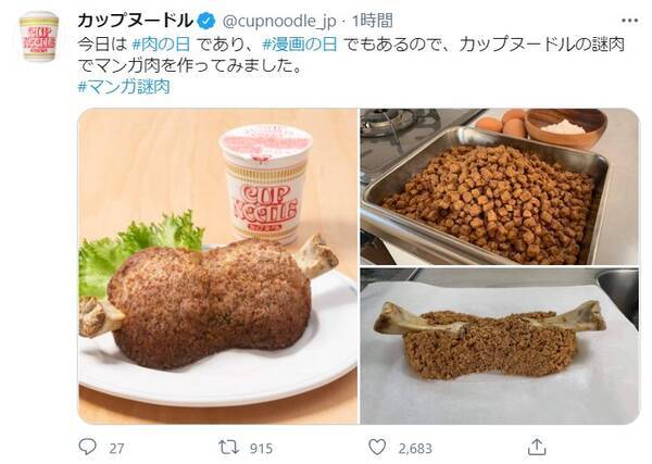 カップヌードルが 謎肉 であの マンガ肉 を再現してる 2次元みたいなでっかいお肉ができあがっちゃったよ 2021年2月9日 エキサイトニュース