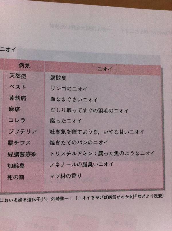 病気は匂いでわかる 病気別匂い一覧が話題に ガンは余ったるい匂い むしり取って直ぐの羽毛の匂いとは togetter
