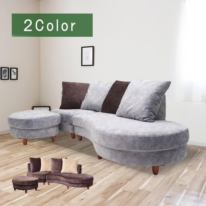 カウチソファー 3人掛け ソファー l字 おしゃれ ファブリック オットマン ソファ コーナーソファー ブルー モダン スツール ローソファ 北欧