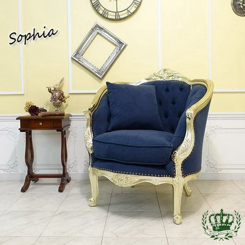 ジェニファーテイラー ソファ 一人掛け 1人掛け アンティーク調 アメリカ クラシック テイスト エレガント 高級 おしゃれ かわいい 姫系 プリンセス ロイヤル ブルー 青 1人 ベロア調 ベルベット 布 布ソファ 脚付き 1人掛けソファ la rosa blue jennifer