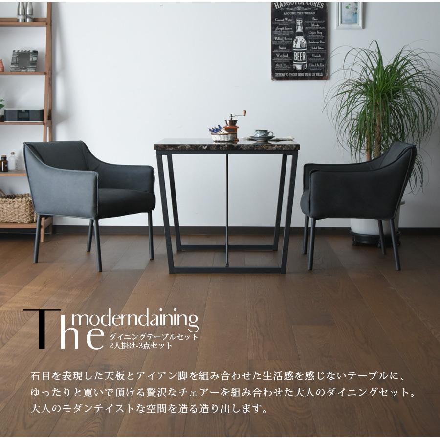 引出し付 ダイニングセット 2人用 食卓 3点セット ダイニングテーブル幅75cm チェア2脚 モダンデザイン