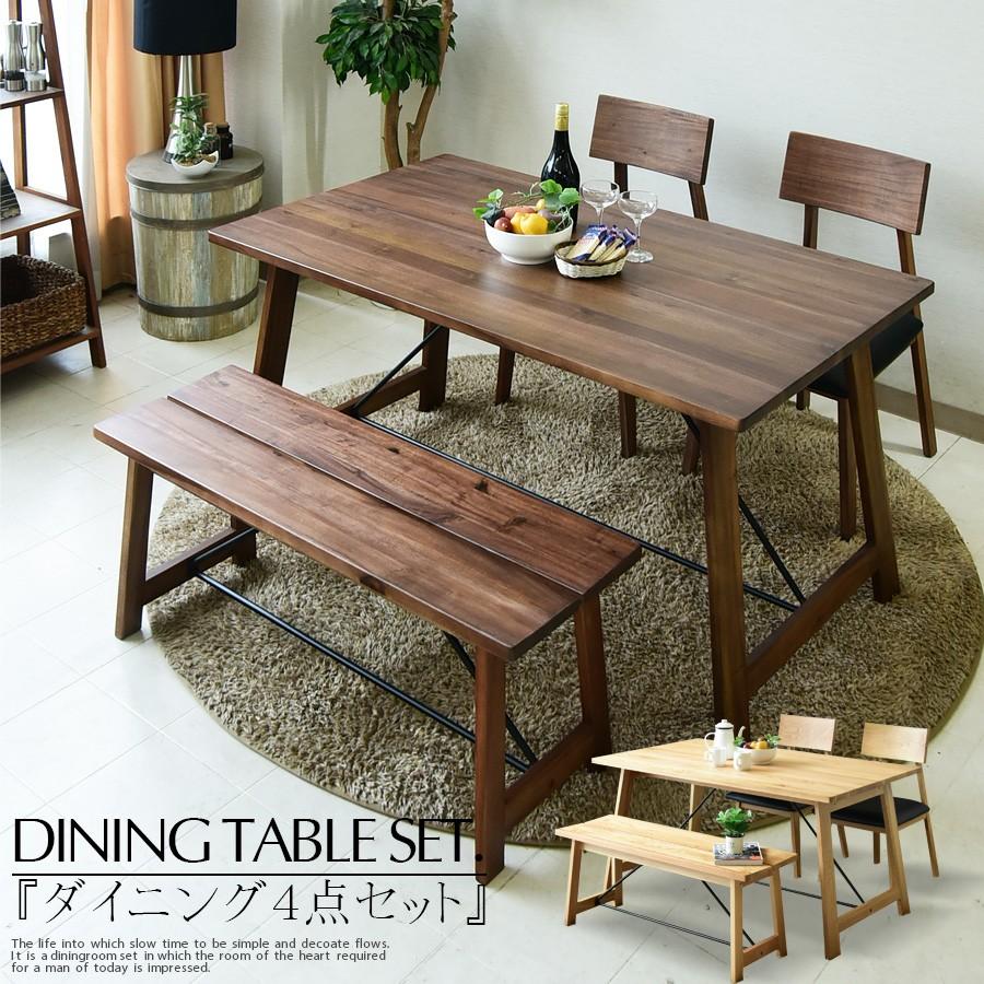 ダイニングテーブルセット 4点セット 4人掛け お客様組立 ベンチ ダイニングテーブル ウォールナット ダイニングセット 代引不可 au pay マーケット