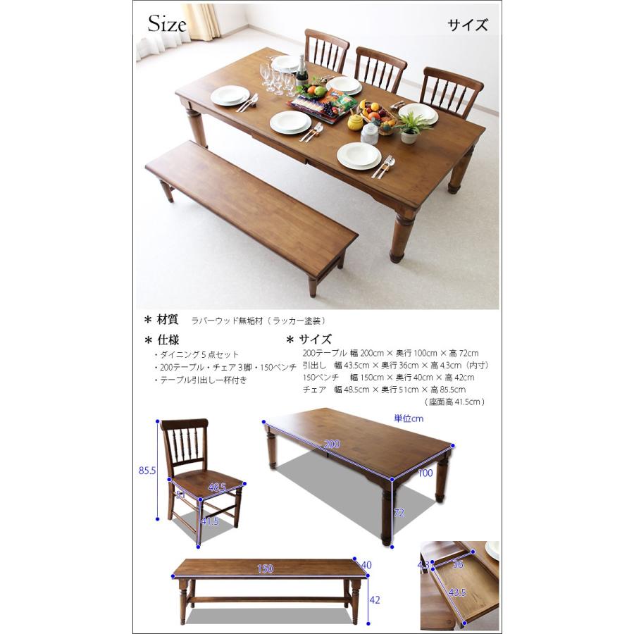 幅200cm ダイニングテーブルセット 5人用 5人掛け 5点セット 無垢 引き出し ベンチ 収納 ダイニングセット ダイニングチェア ダイニングテーブル 食卓 食卓セット テーブル チェア 椅子 いす イス 木製 シンプル モダン カントリー ナチュラル 収納家具 家具通販 大川市 家具の杜