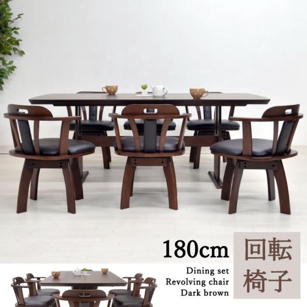 ダイニング 幅190cm ダイニングテーブルセット 6人掛け テーブル ダイニングテーブル x1 ダイニングチェア x6 回転チェア 肘付き 7点セット 和風 和 モダン 食卓テーブルセット カラー等 ブラウン 素材 ラバーウッド アウトレット価格並 送料無料 楽天 通販 大川家具