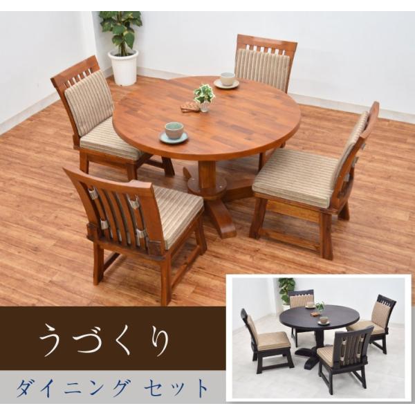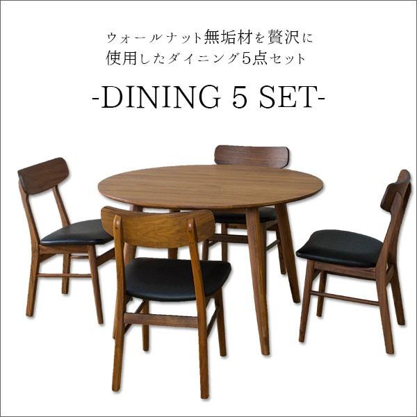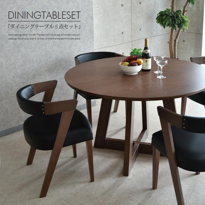 ダイニングテーブルセット 4人掛け 幅105cm 丸テーブル 円 北欧 木製 ウォールナット 5点セット ダイニング5点セット 4人用 食卓 シンプル ブラウン ダイニングテーブル ダイニングチェアー イス テーブル 家具通販
