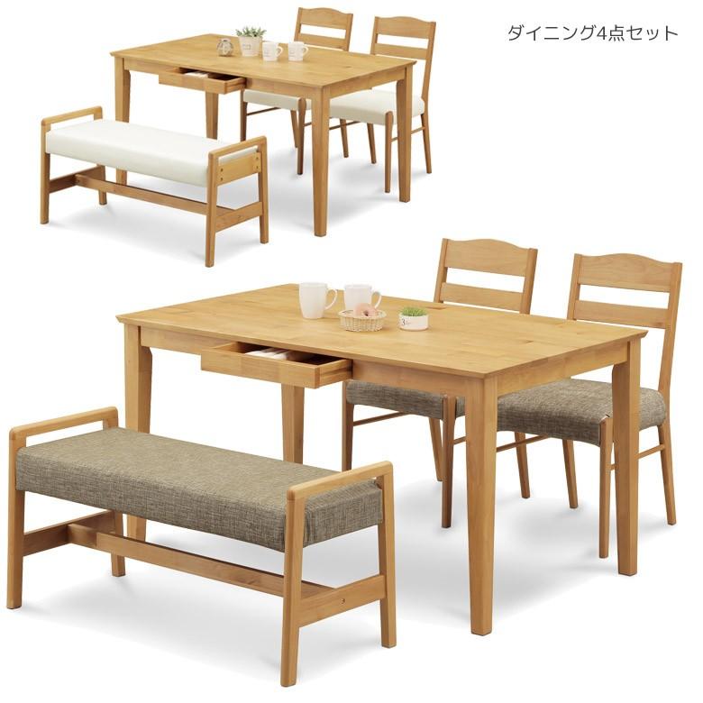 ダイニングテーブルセット 伸縮 伸長 4人用 ベンチ ダイニングセット 4点セット 4人掛け 長方形 120 150テーブル 北欧 モダン 木製 ビーチ無垢 ビーチ突板 ファブリック 激安家具の大宝家具