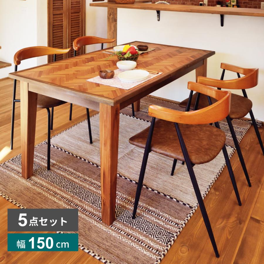ダイニングテーブルセット 4人用 5点 アンティーク 白 おしゃれ ダイニングセット 幅150 4人掛け 木製 安い