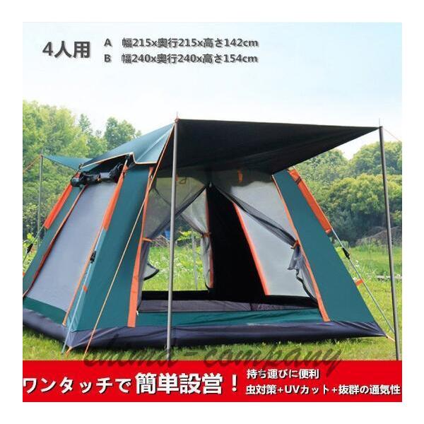 テント ワンタッチ キャンプテント ポップアップ 2人用 4人用 通気性 uvカット 防風 アウトドア用品 花見 運動会 収納袋付き アウトドアテント