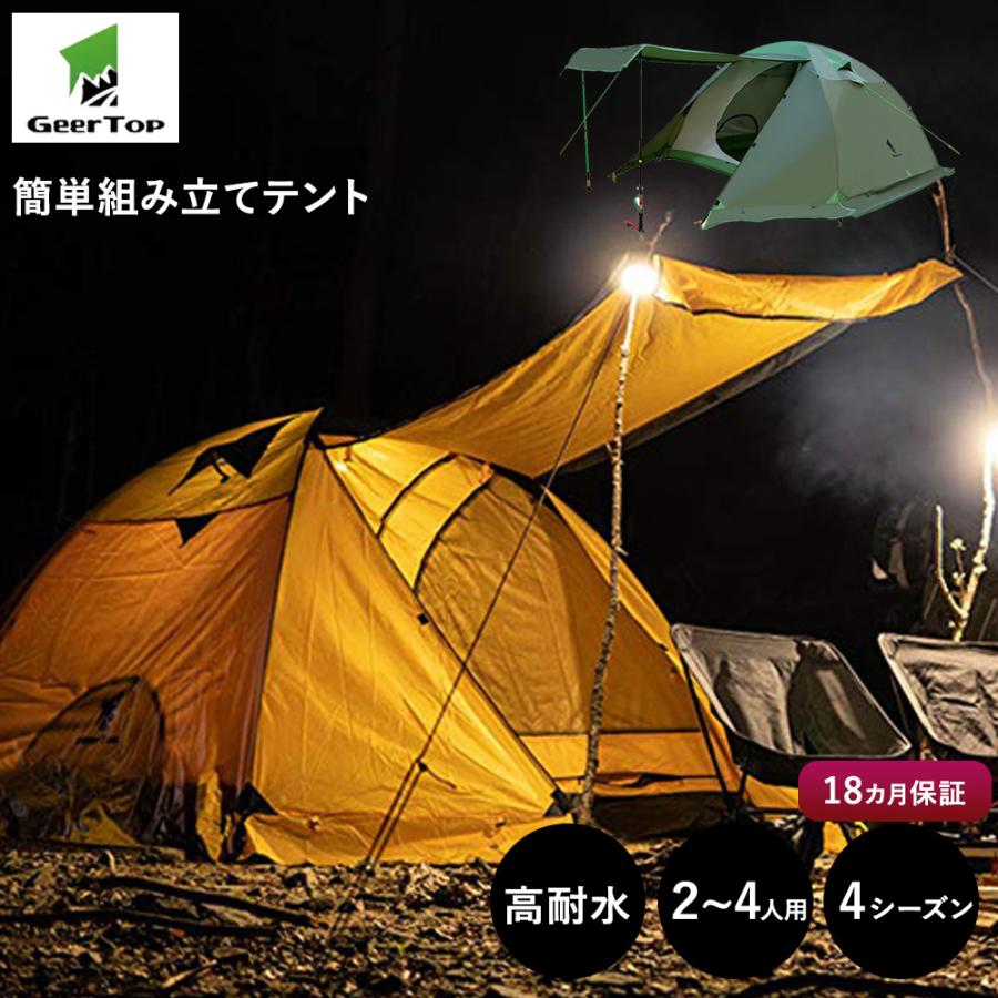 amazon geertop テント 4人用 ツーリングテント 前室付き ドームテント キャンプテント 4シーズンテント 二重層構造 pu5000mm 大型テント 防水テント 軽量テント ファミリーテント 家族 旅行 バックパック キャンプ アウトドア geer top テント 本体