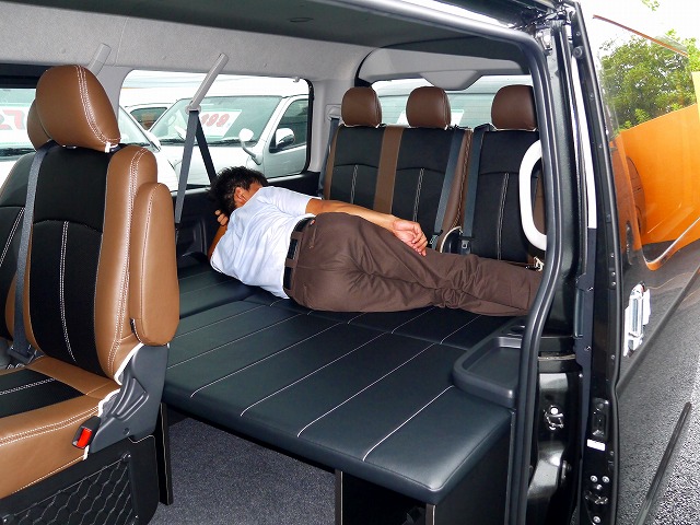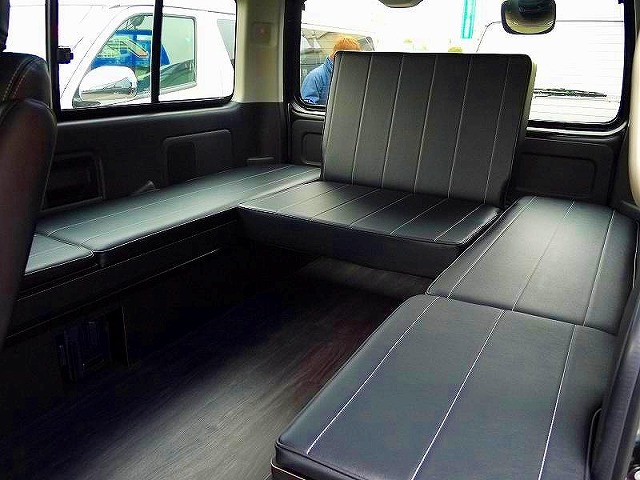 4列目は横4人 スーパーロングベースの巨大ワゴンにベッドキットを追加 ガレージフジの10人乗りワゴン スタイルワゴン ドレスアップナビ カードレスアップの情報を発信するwebサイト
