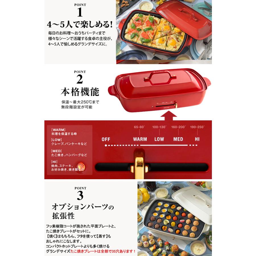 レシピと4種から選べる特典付き 限定カラーあり bruno ブルーノ ホットプレート グランデ たこ焼き 大型 大判 boe026 おしゃれ たこ焼き器 グリル鍋 焼肉 焼き肉 パーティ プレゼント インスタ映え ポイント10倍 送料無料 bruno ホットプレート グランデ