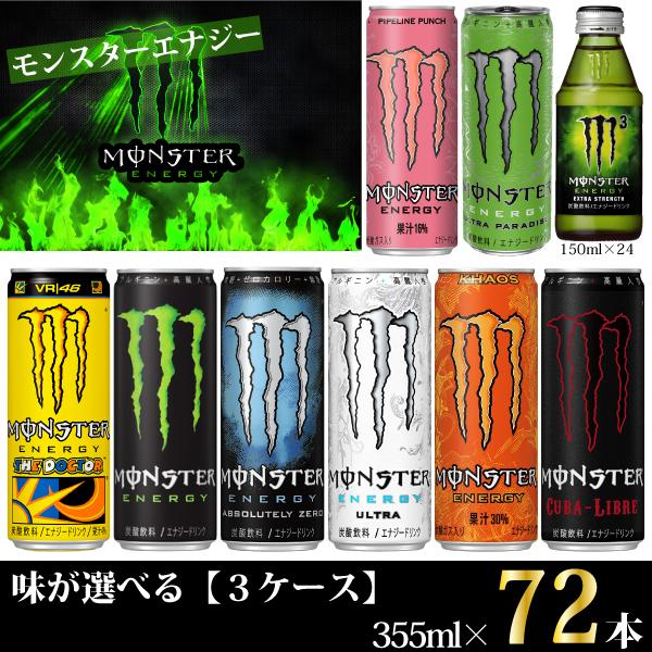 アサヒ飲料 モンスターエナジー 355ml 72本 3ケース 8種から選べるエナジードリンク 送料無料 一部地域を除く