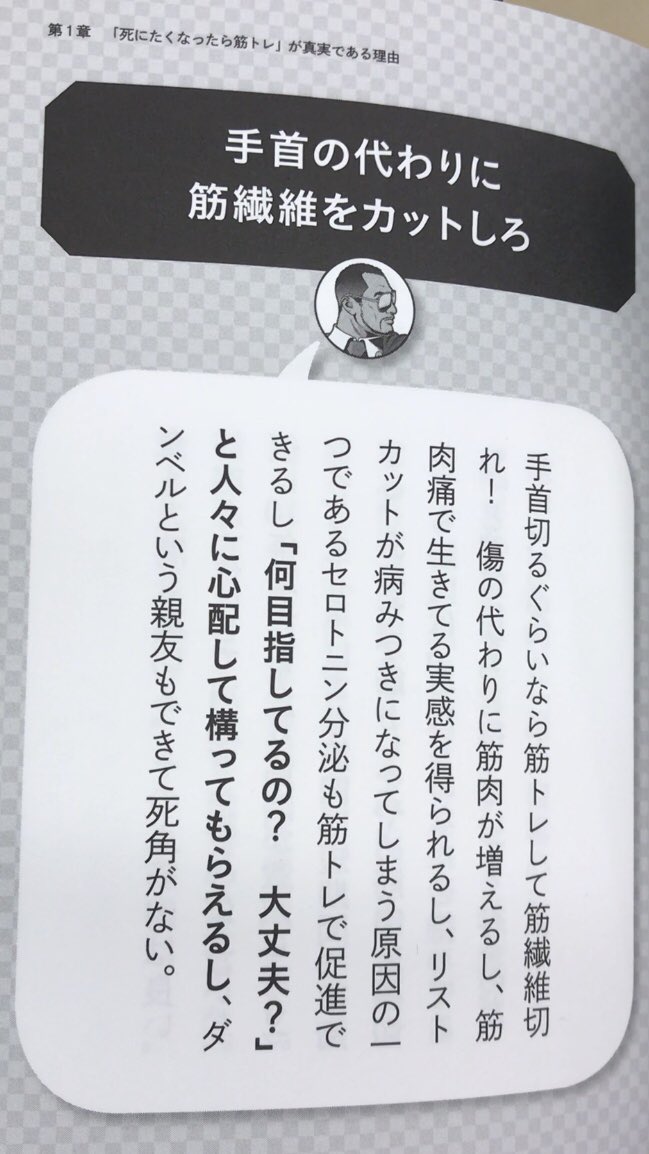 手首切るくらいなら筋トレしろ その理由が斜め上 考え方ゴリラ 圧倒的ポジティブ自傷行為 togetter