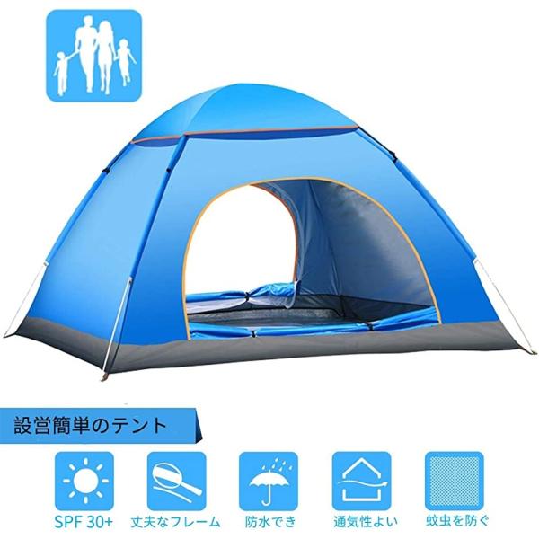 テント ワンタッチテント キャンプテント 3 4人用 設営簡単 防災用 防風防水 通気性に優れ uvカット日よけテント キャンプ用品 収納袋付き 折りたたみ 室内 お花見 運動会 登山用 プチプラファッション通販 mdk store