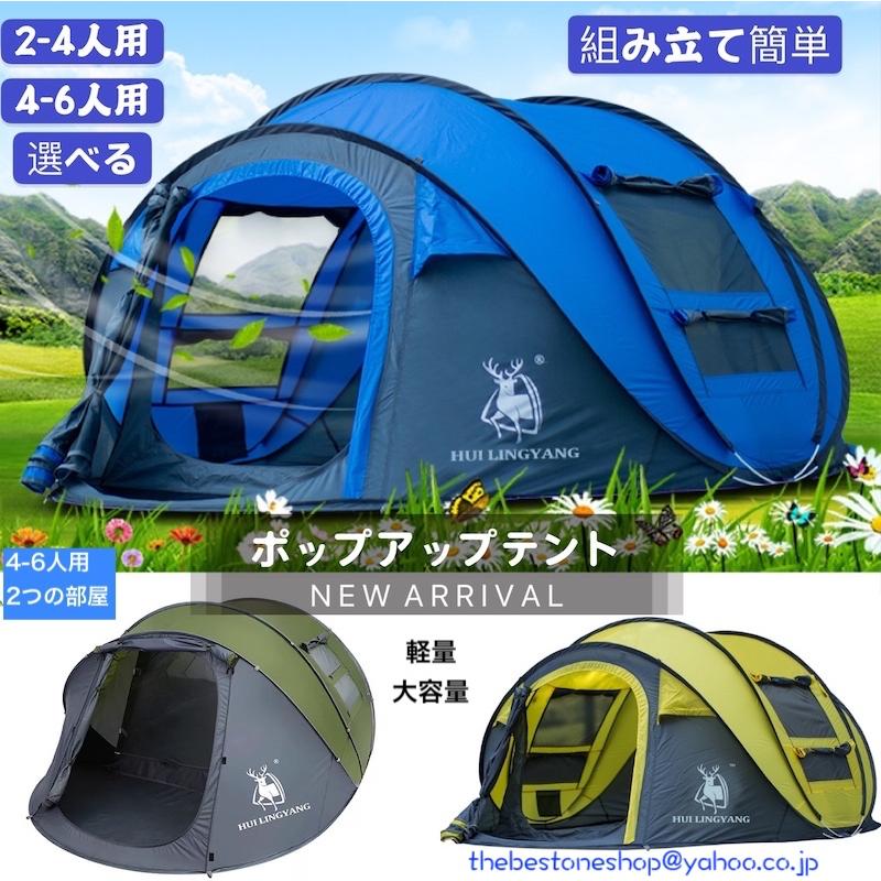 2 4人用 4 6人用ポップアップテント アウトドア 投げるだけで簡単設置 ドーム型 ワンタッチテント 軽量 丈夫 広い ビッグテント サンシェード 日除け 防水防雨 d022 the best one 通販 yahoo ショッピング