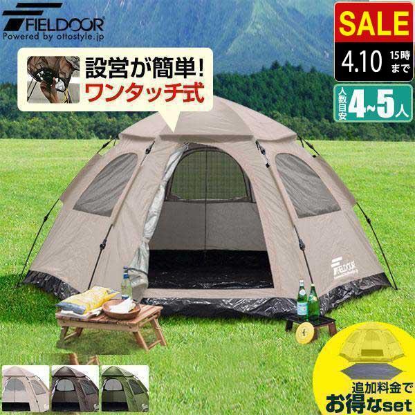 1年保証 テント ワンタッチ 4人用 5人用 ワンタッチテント uvカット 防水 大型 ヘキサゴン テント 耐水圧 1 500mm以上 ドームテント キャンプテント ファミリー キャンプ用品 アウトドア セット 簡易テント 軽量 日よけ キャンプ fieldoor