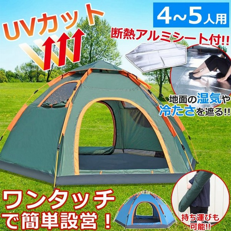 クーポン利用で更にお得に4 5人用おしゃれテント ワンタッチテント 秒殺 選べる3カラー 安心uvカット 防水 通気性抜群 キャンプ アウトドア ファミリーテント