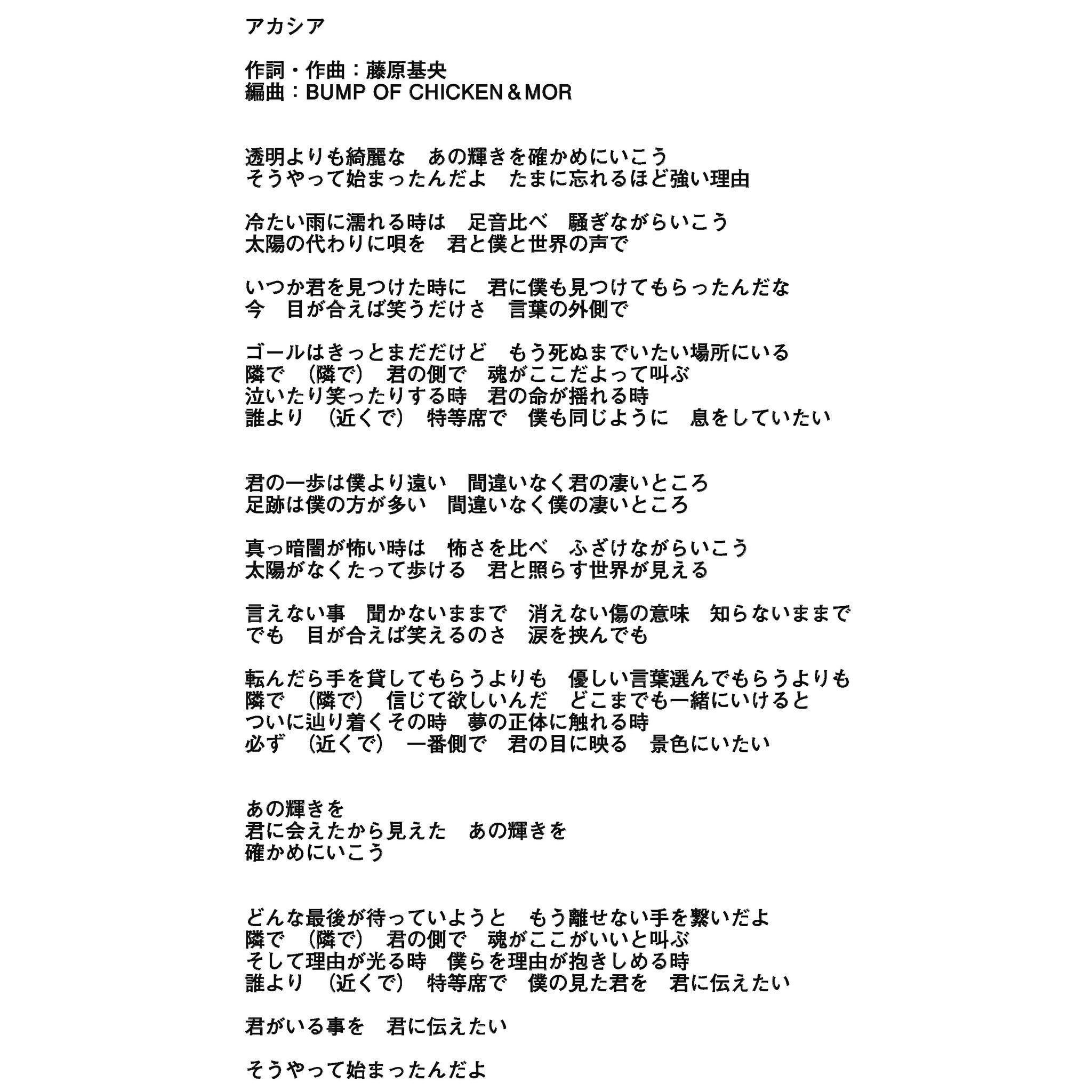 bump of chicken アカシア 歌詞 bump of chickenの歌詞一覧リスト