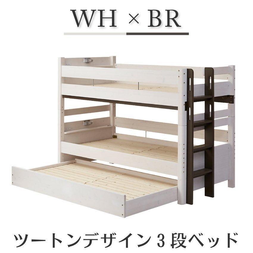 3段ベッド 親子ベッド 木製 無垢 子供から大人まで 三段ベッド スライドベッド 3人用 セパレート カントリー パイン無垢 ツインベッド 分割可能 lvlスノコ stファニチャー