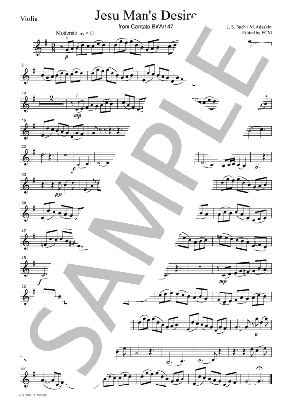 楽譜データ 主よ人の望みの喜びよ バッハ作曲 名古屋楽譜工房