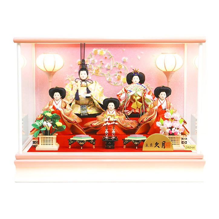 雛人形 ひな人形 ぷり姫 芥子五人飾り 三人官女付 雛 ベージュピンク コンパクト ケース飾り