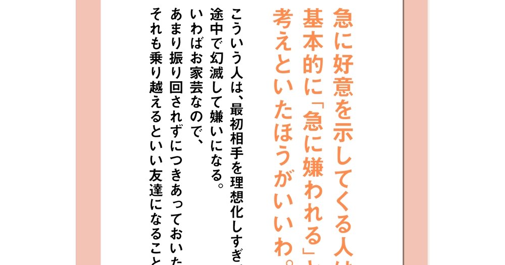 急に好意を示してくる人は 基本的に 急に嫌われる と 考えといたほうがいいわ 精神科医tomyが教える 1秒で不安が吹き飛ぶ言葉