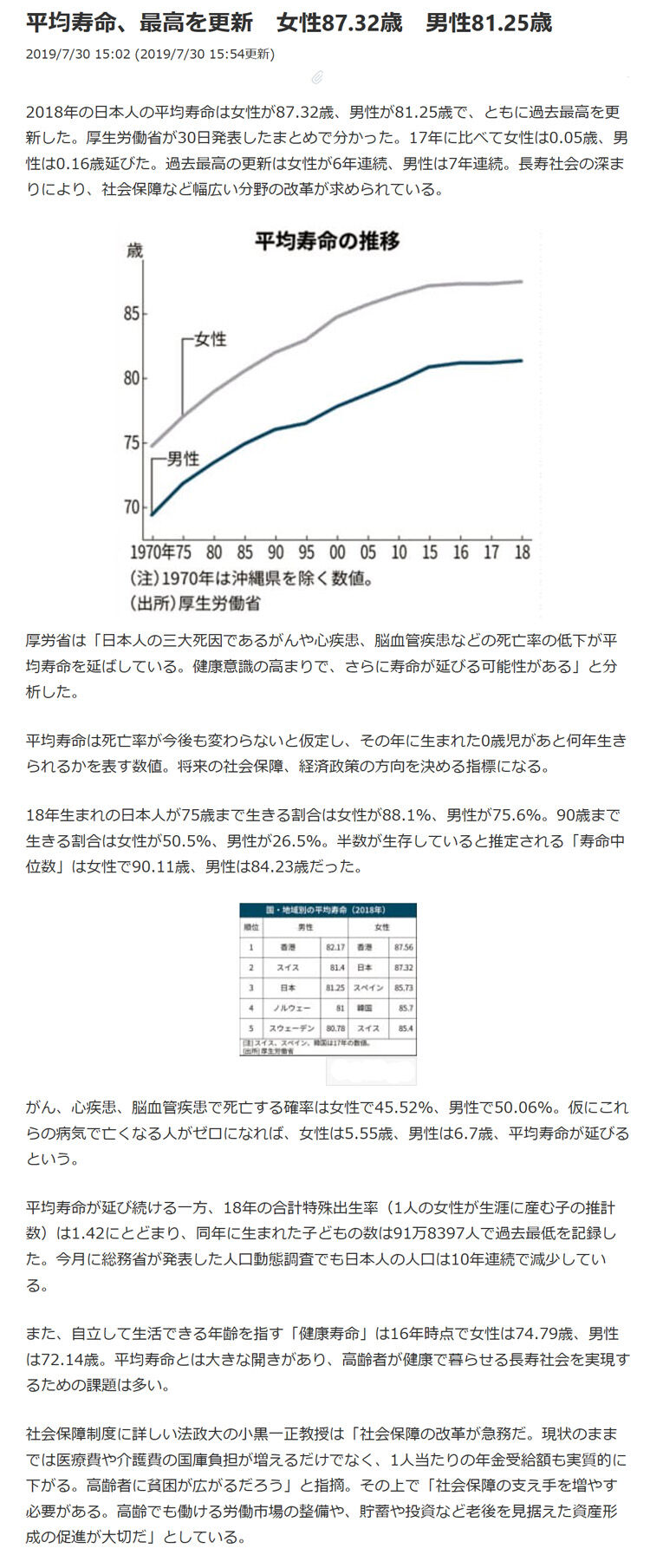 日本人の平均寿命と推移 寿命と病気の統計