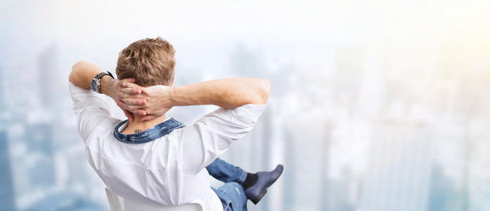 觀景人在高樓陽臺俯瞰城市雙手向上仰望天空感受和慶祝自由勝利sucsess表達他的生活樂趣積極的情緒複製空間照片檔及更多人照片