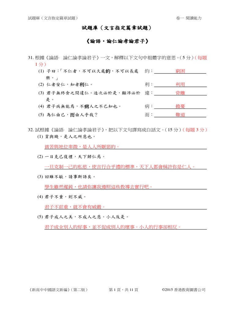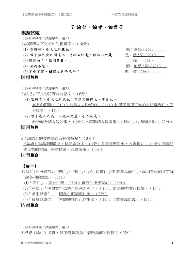 單元4 論仁論孝論君子1答案 1