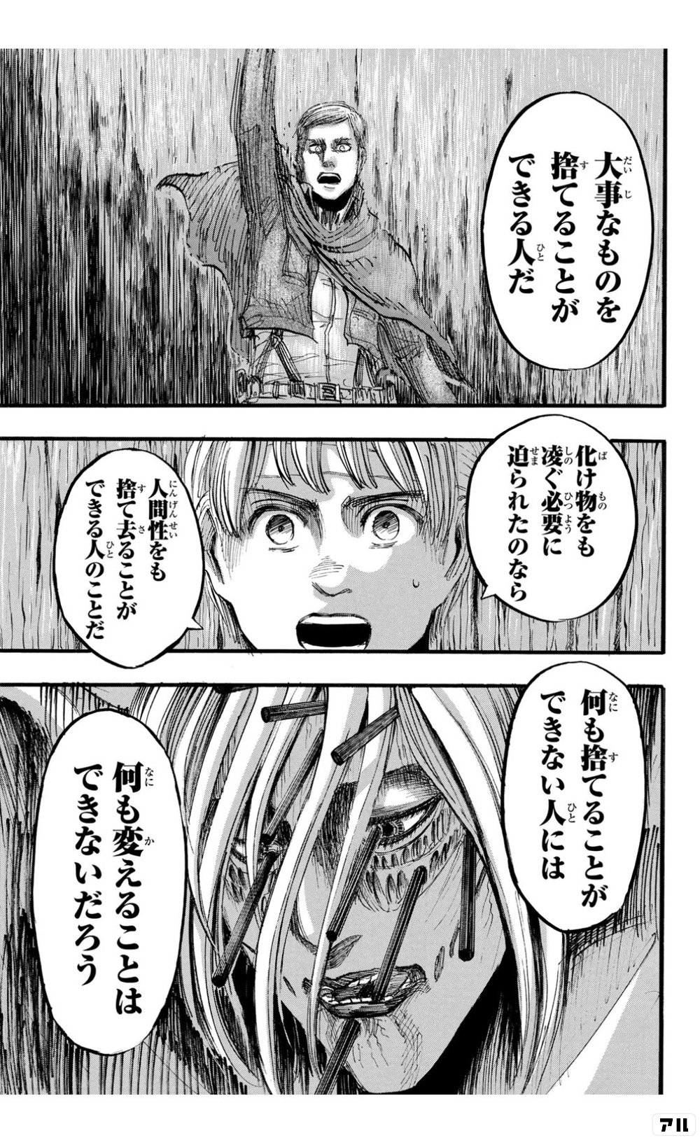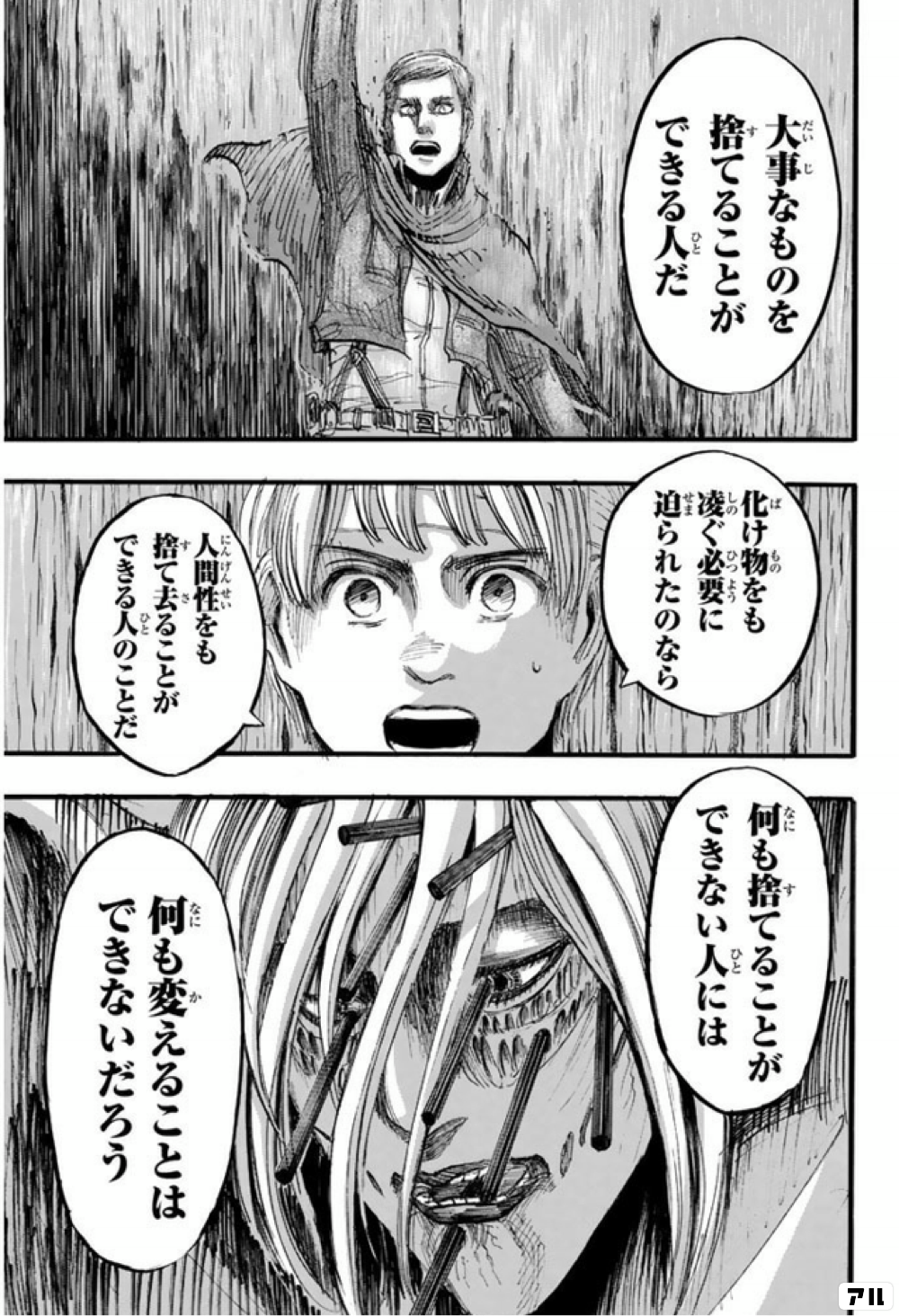 進撃の巨人 アルミンの名言 何も捨てることができない人には 何も変えることはできないだろう 1人の少年の人生を狂わせてしまう 漫画アニメまとまとめ速報