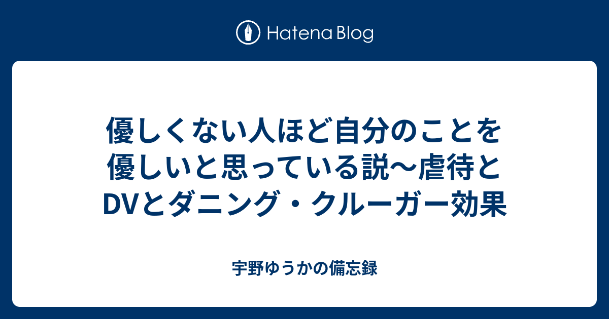 優しくない人ほど自分のことを優しいと思っている説 虐待とdvとダニング クルーガー効果 宇野ゆうかの備忘録