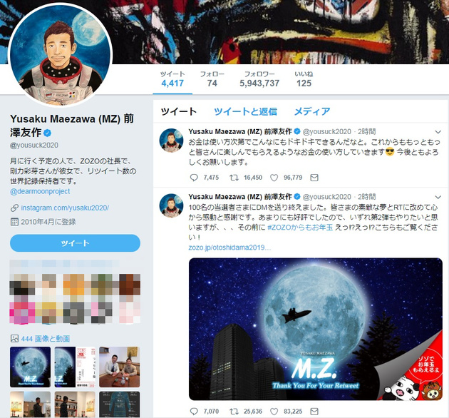 まさかの事態 zozo前澤社長 お年玉100万円 の抽選結果が明らかに その後 フォロワー数はどうなったのか ロケットニュース24
