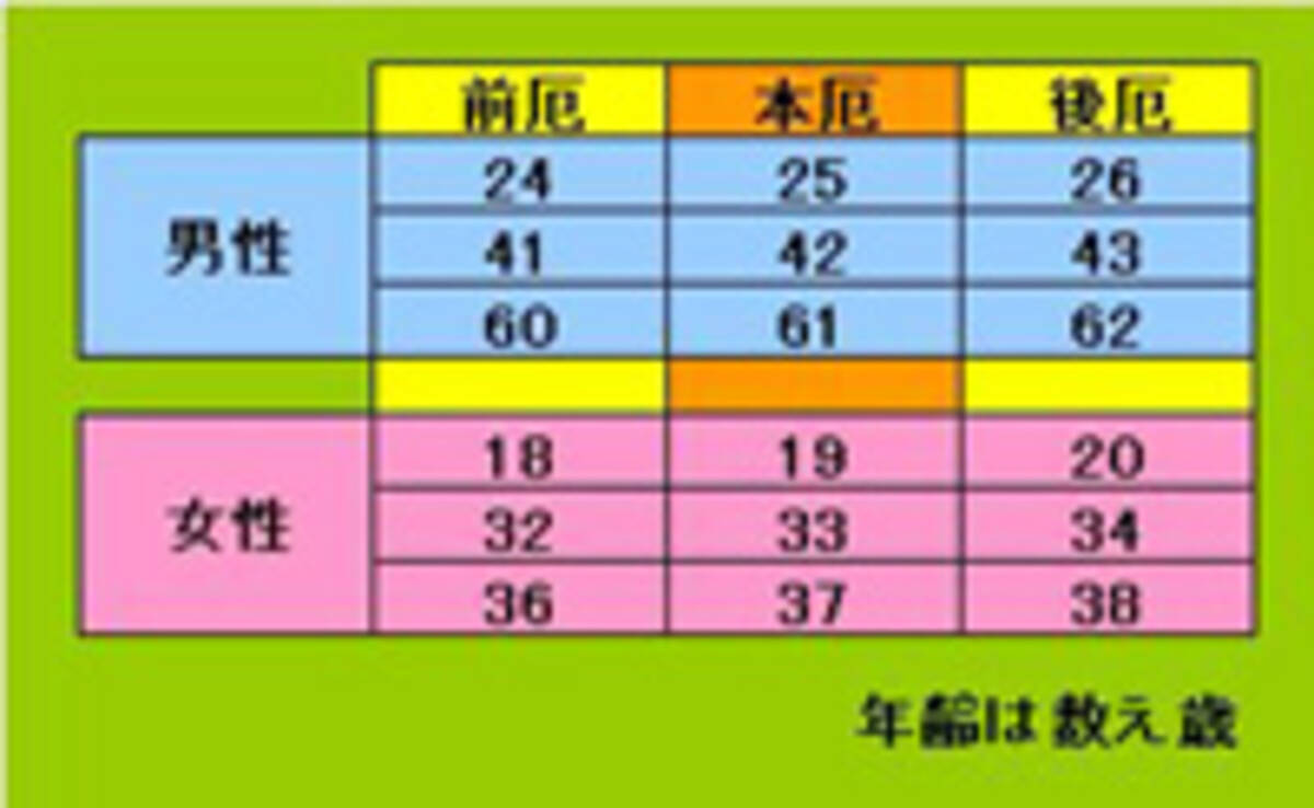 令和3年厄年早見表