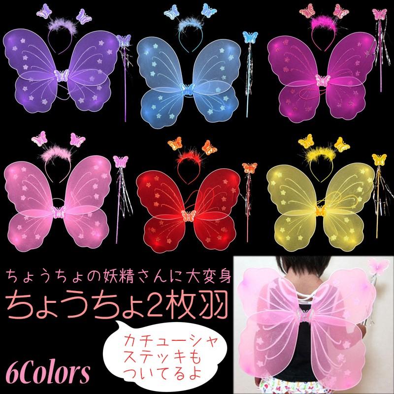 蝶々 の 妖精 に 大変身 2枚 羽 ステッキ カチューシャ 3点 セット 選べる 全6色 ハロウィーン コスプレ 仮装 衣装 飾り ギフト パーティグッズ パーティ衣装 10000090 smile picotto 通販 yahoo ショッピング
