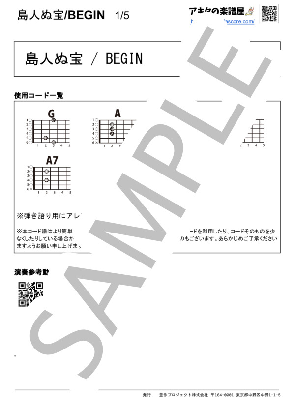 島人ぬ宝 begin のコード コードスケッチ