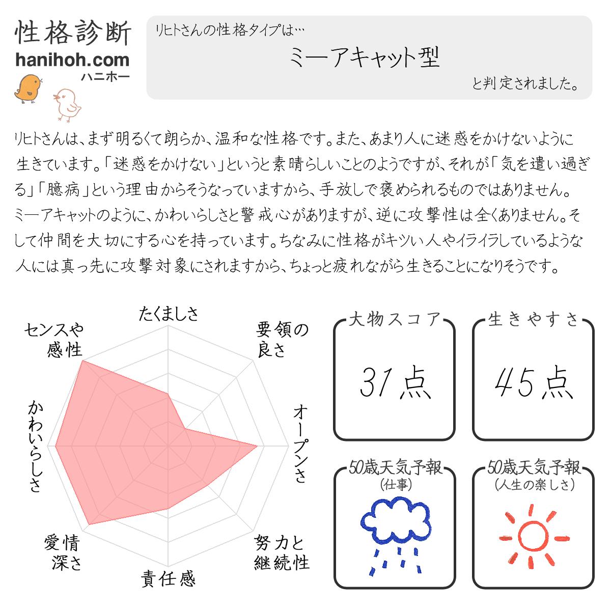 人間性 思いやり 優しさ性格診断 よく当たるハニホー 診断結果