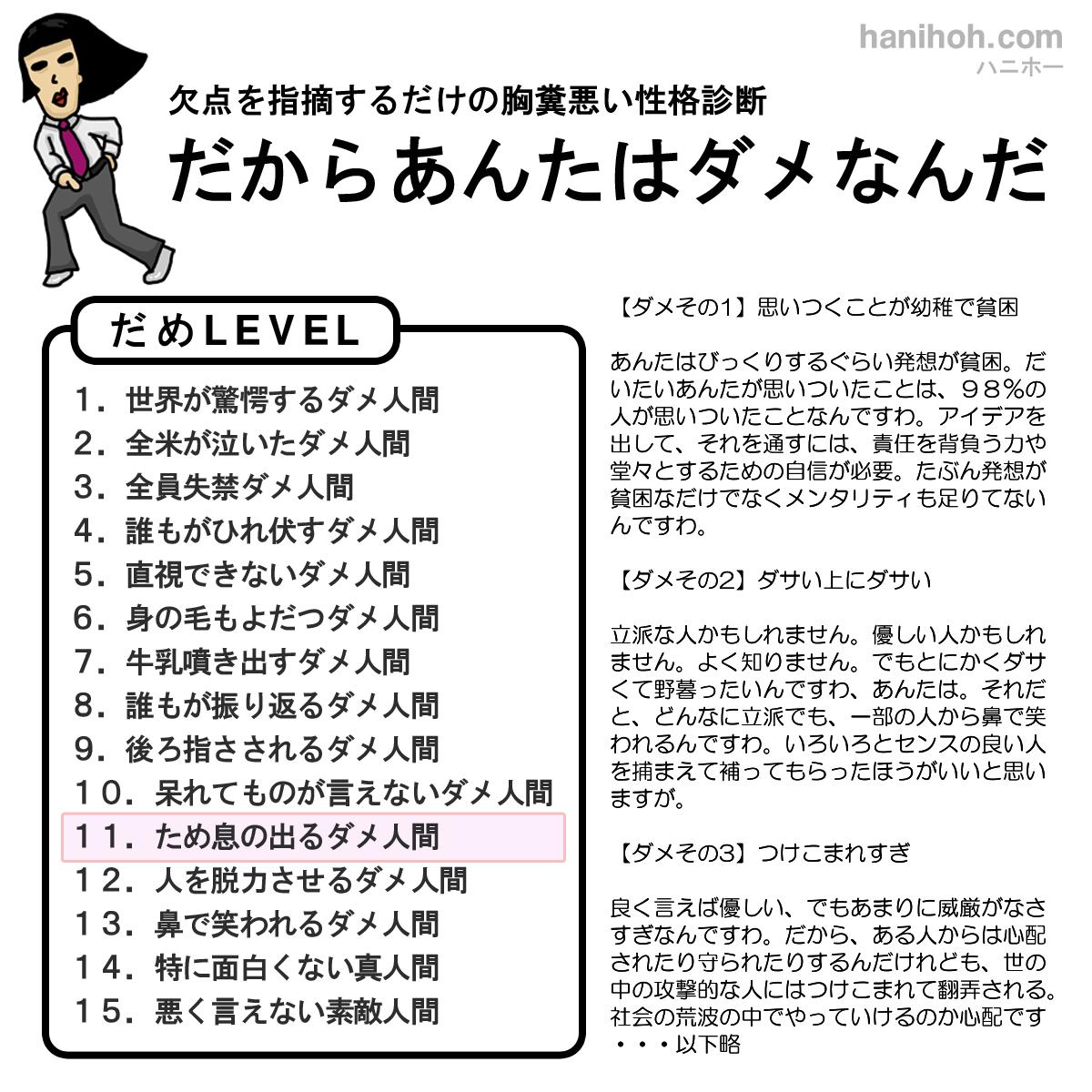 だからあんたはダメなんだ 無料の性格診断ハニホー 診断結果