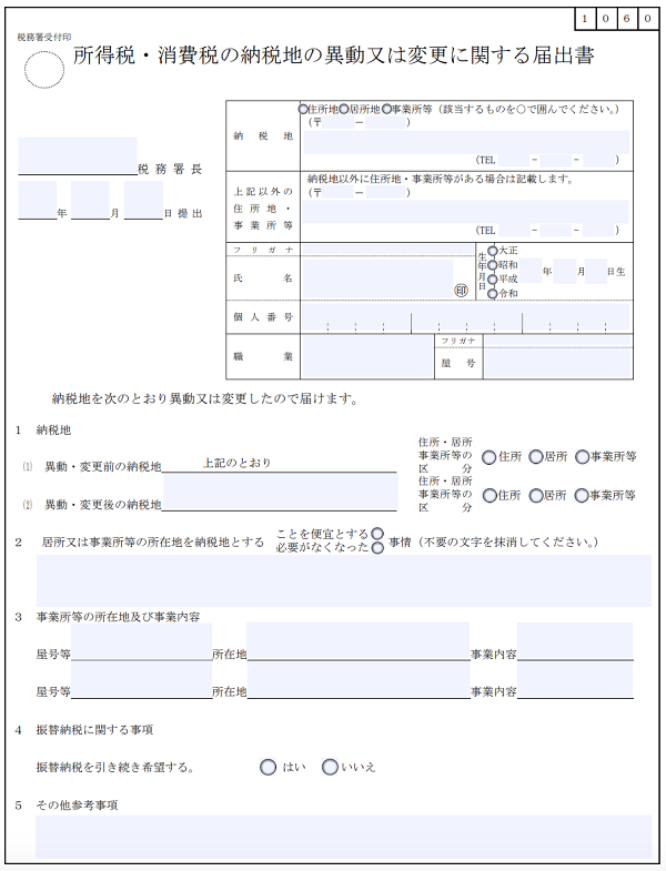 所得税の納税地の変更に関する届出書 提出先 記入例など 税理士検索freee