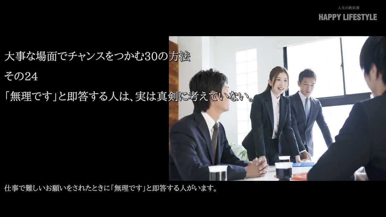 無理です と即答する人は 実は真剣に考えていない 大事な場面でチャンスをつかむ30の方法 happy lifestyle