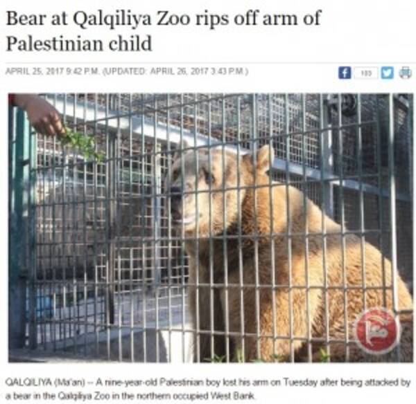 遠足で動物園に来た9歳少年 クマに腕を食べられる パレスチナ 2017年4月29日 エキサイトニュース