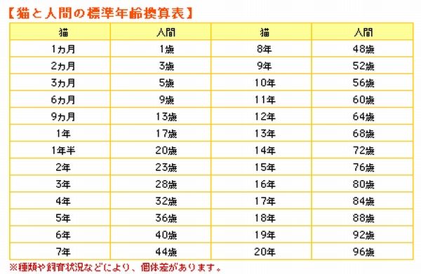 犬の年齢 猫の年齢換算表 永遠日誌