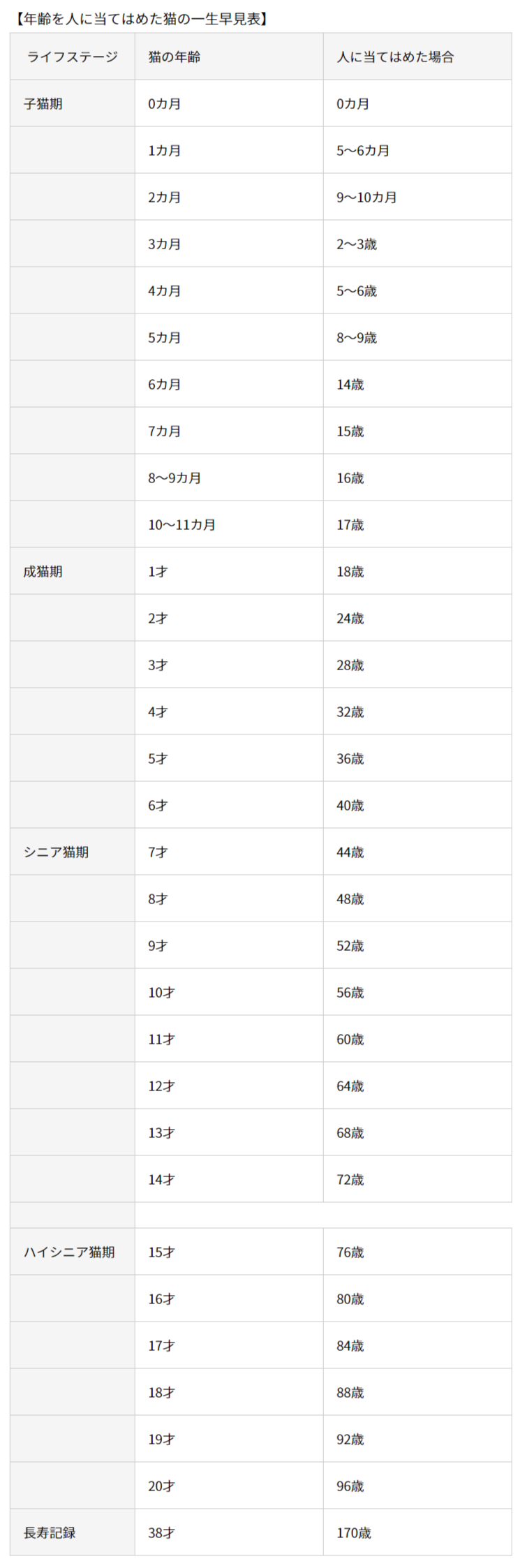 猫の年齢換算表 ねこと暮らす
