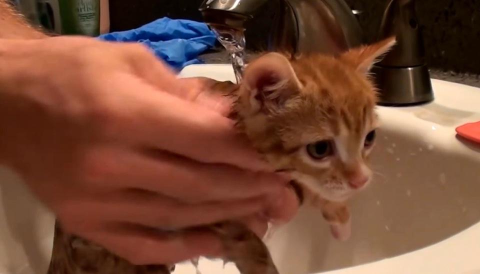 五周大的流浪小猫被好心人收养 新家的动物们对待它比主人还暖心